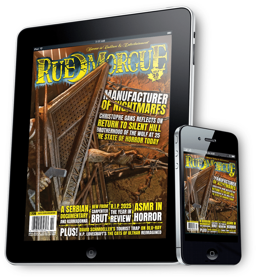 Receive 1 or 2 Year (6 – 12 print issues annually) of RUE MORGUE’s collectible print magazine delivered to your door, AND corresponding digital editions AND instant access to RUE MORGUE’s entire archive of digital back issues!
